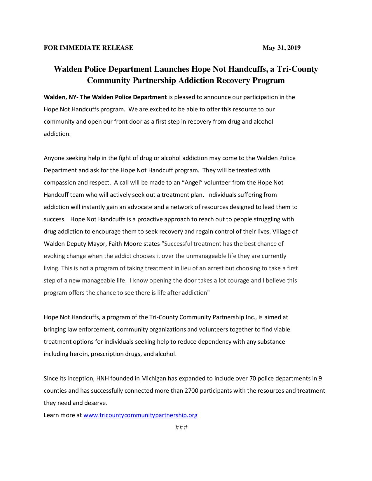 “Successful treatment has the best chance of evoking change when the addict chooses it over the unmanageable life they are currently living. This is not a program of taking treatment in lieu of an arrest but choosing to take a first step of a new manageable life. I know opening the door takes a lot courage and I believe this program offers the chance to see there is life after addiction”