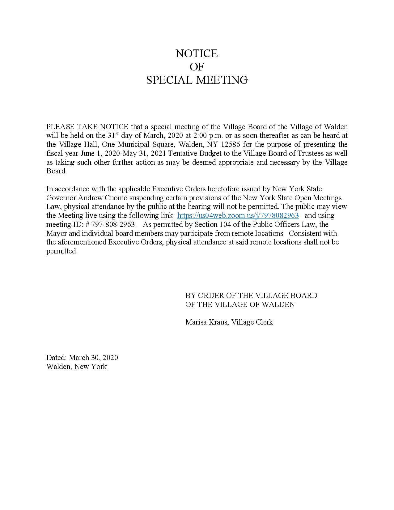 Special Village Board Meeting 3-31-2020 by Marisa | Mar 30, 2020 | Announcements | 0 comments Submit a Comment Cancel replyYour email address will not be published. Required fields are marked *Comment * Name * Email * Website Please enter an answer in digits:19 + nine =