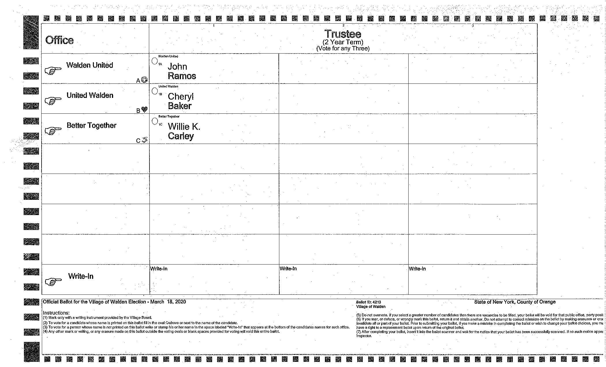 Tomorrow is Election Day for the Village of Walden! Below is a sample ballot for you to look over in preparation of coming out to vote!